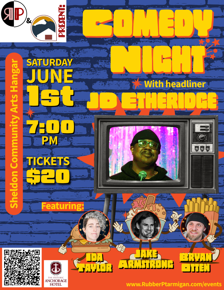 Rubber Ptarmigan is coming back to roost in the Mat-Su Borough’s grooviest arts hangar! Join us for a night of stand-up comedy as funny as the day (in Alaska in June) is long. Saturday, June 1st at 7:00pm in the Sheldon Community Arts Hangar in Talkeetna. Tickets are $20.